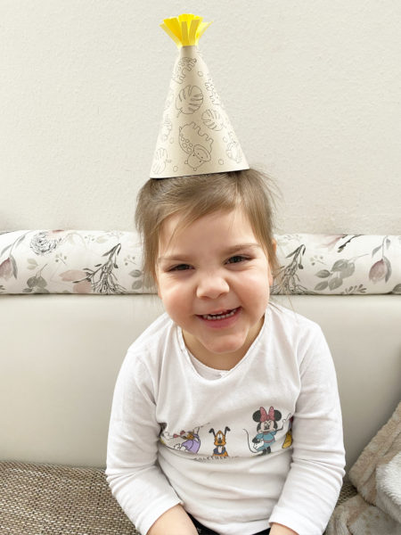 Fertig! Natürlich könnt ihr euer Hütchen noch weiter mit Glitzersteinen, Federn, Pompons oder anderen tollen Sachen verschönern. Eurer Kreativität sind keine Grenzen gesetzt.