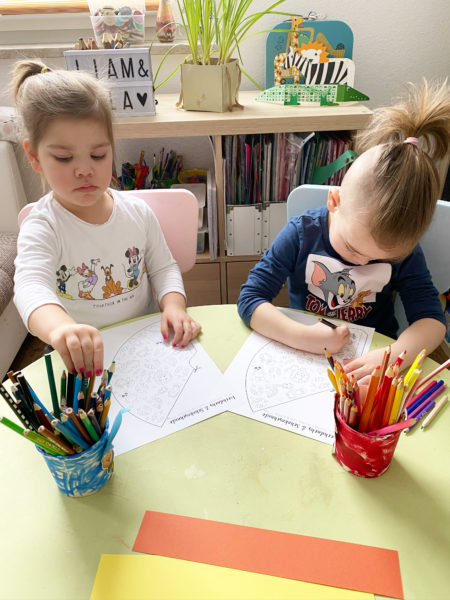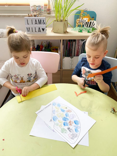 Druckt euch die Vorlage auf Fotokarton aus und malt diese bunt aus. So wie es euch gefällt. Natürlich könnt ihr die Vorlage auch gleich auf buntem Farbkarton ausdrucken.